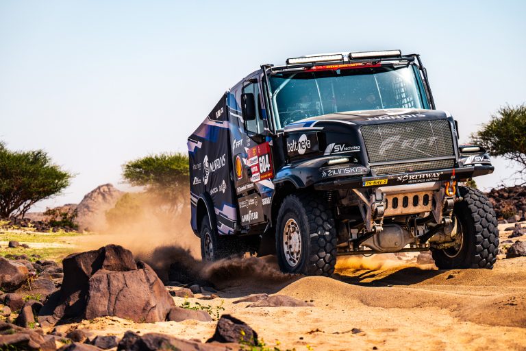ALULA – Following Ales Loprais’s victory in the opening stage, Team De Rooy FPT delivered another stellar performance in the truck class during Stage 2 of the Dakar Rally. Vaidotas Zala finished the grueling run from Yanbu to AlUla in second place, closing to within just three minutes of standings leader Mitchel van den Brink.