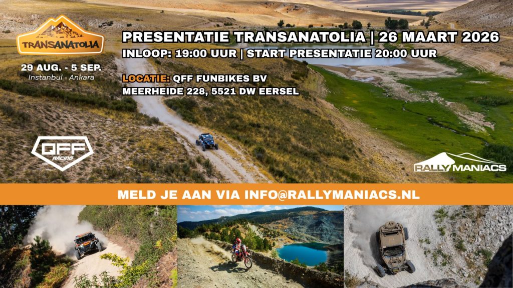Op donderdag 26 maart komt de organisatie van TransAnatolia weer naar Nederland voor een presentatie over deze rally. Tijdens deze presentatie ontvang je meer informatie over de opzet van de rally, de route, veiligheid, logistiek en worden al je vragen beantwoord.