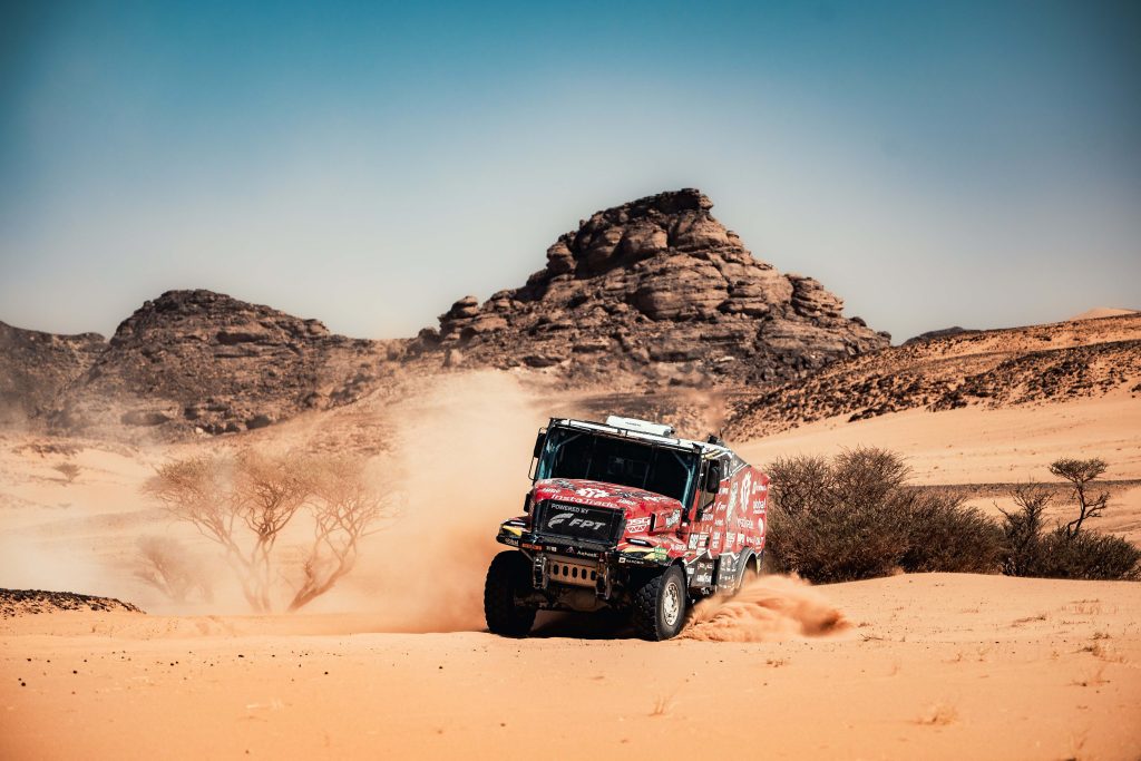 During the challenging stage, a 721-kilometer loop around Wadi Ad Dawasir with 486 kilometers of special, Zala and his crew opted for a conservative approach in the Iveco Powerstar. “We didn’t push too hard. We hit a lot of rocky terrain today, so we decided not to take any risks. The standings look good for us and we didn’t want to throw that away on mistakes or unnecessary risks.”