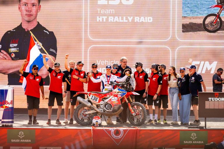 Roma moest gisteren nog een heroïsch einde beleven. De Spanjaard beschadigde zijn voorwielophanging zwaar en reed de laatste kilometers op drie wielen. In Yanbu ging zijn brandstof op vlak voor de bivouac. Laia Sanz sleepte hem naar de finish. Ondanks een minuut te laat inchecken mocht hij vandaag starten. De 53-jarige kampioen van 2014 staat voor het eerst sinds 2019 weer op het podium. Ford plaatste twee Raptors in de top drie.